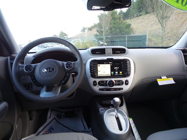 The post today is of two color contrasting Kia Soul EV's (Electric Vehicles): A 2015 Kia Soul EV plus trim is up first in clear white with a white/light gray/sky blue interior from California that gives the cabin an open airy feel.